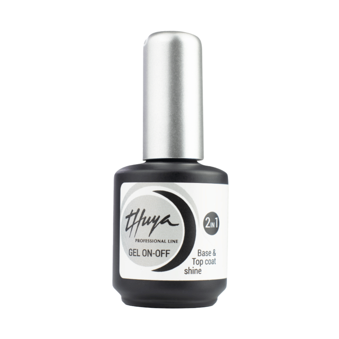 Thuya Base & Top Coat 2 i 1 fra den professionelle Gel On-Off serie er Thuya's innovative løsning til at maksimere din tid i salonen. Dette alsidige enkeltprodukt fungerer perfekt som både Base Coat og Top Coat Shine, hvilket strømliner din manicure-service og gør det til et essentielt grundelement i enhver professionel salon. Produktet giver en glansfuld og fleksibel finish med fremragende vedhæftning, og dets kvalitet er garanteret af Thuya's egen laboratorieproduktion under de strenge ISO 22716-standarder.