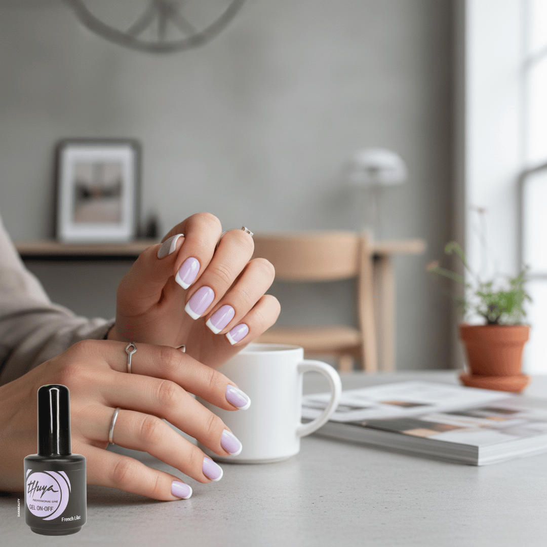 Udforsk Danbeautys udvalg af professionelle Thuya Gellakker, og giv dine kunder en elegant manicure med den bløde og smukke 'French Lilac'.
